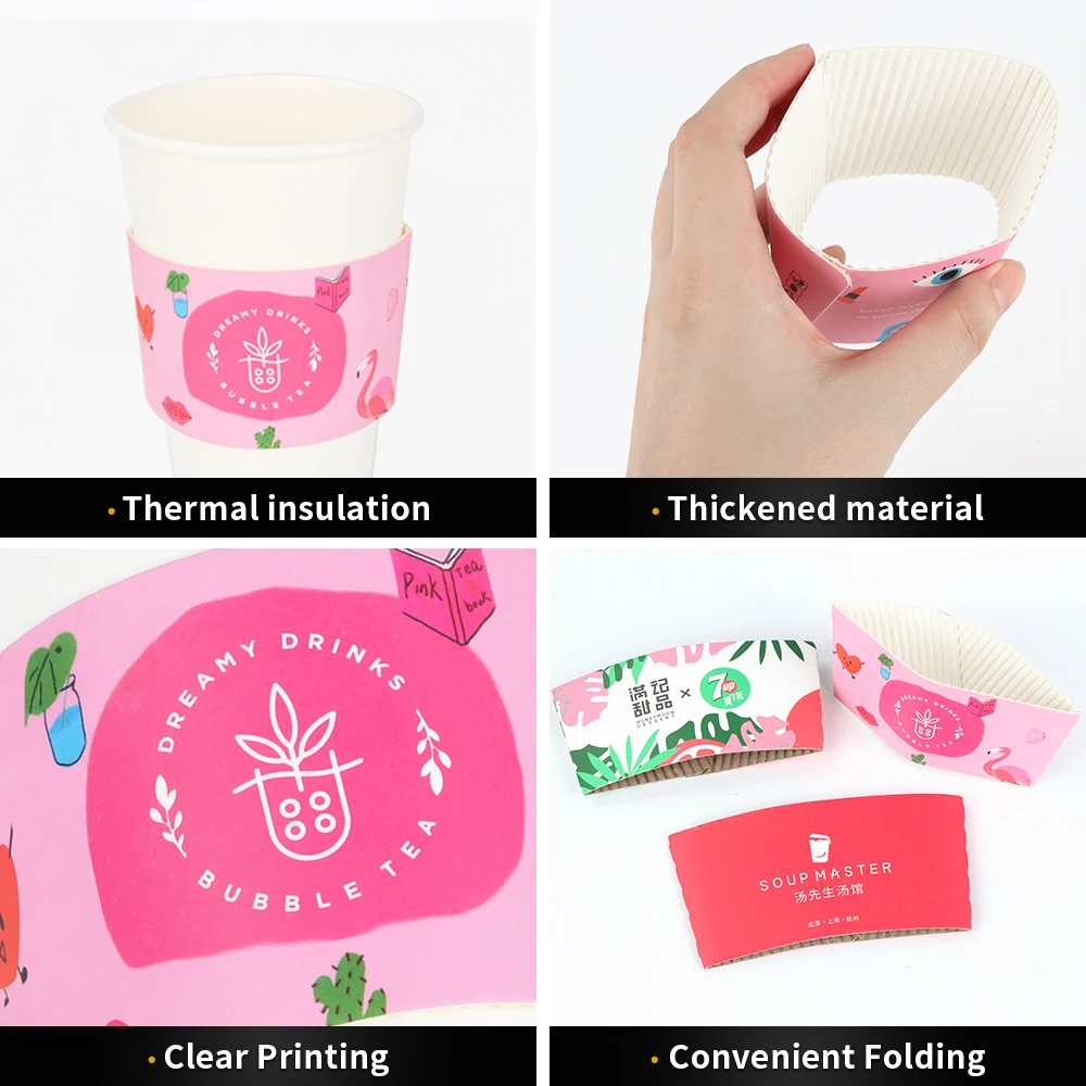 product eco friendly biodegradable cup sleeve disposable kraft paper coffee tea holder custom logo printing for takeaway-11